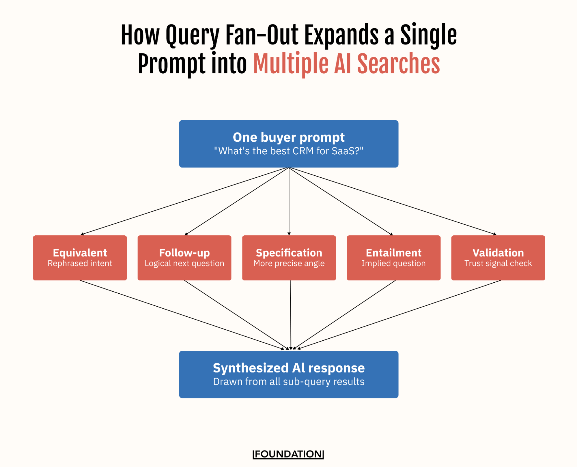 The practical consequence: your buyers’ “one search” is actually dozens of searches happening in parallel, and your content is (hopefully) being evaluated across all of them.