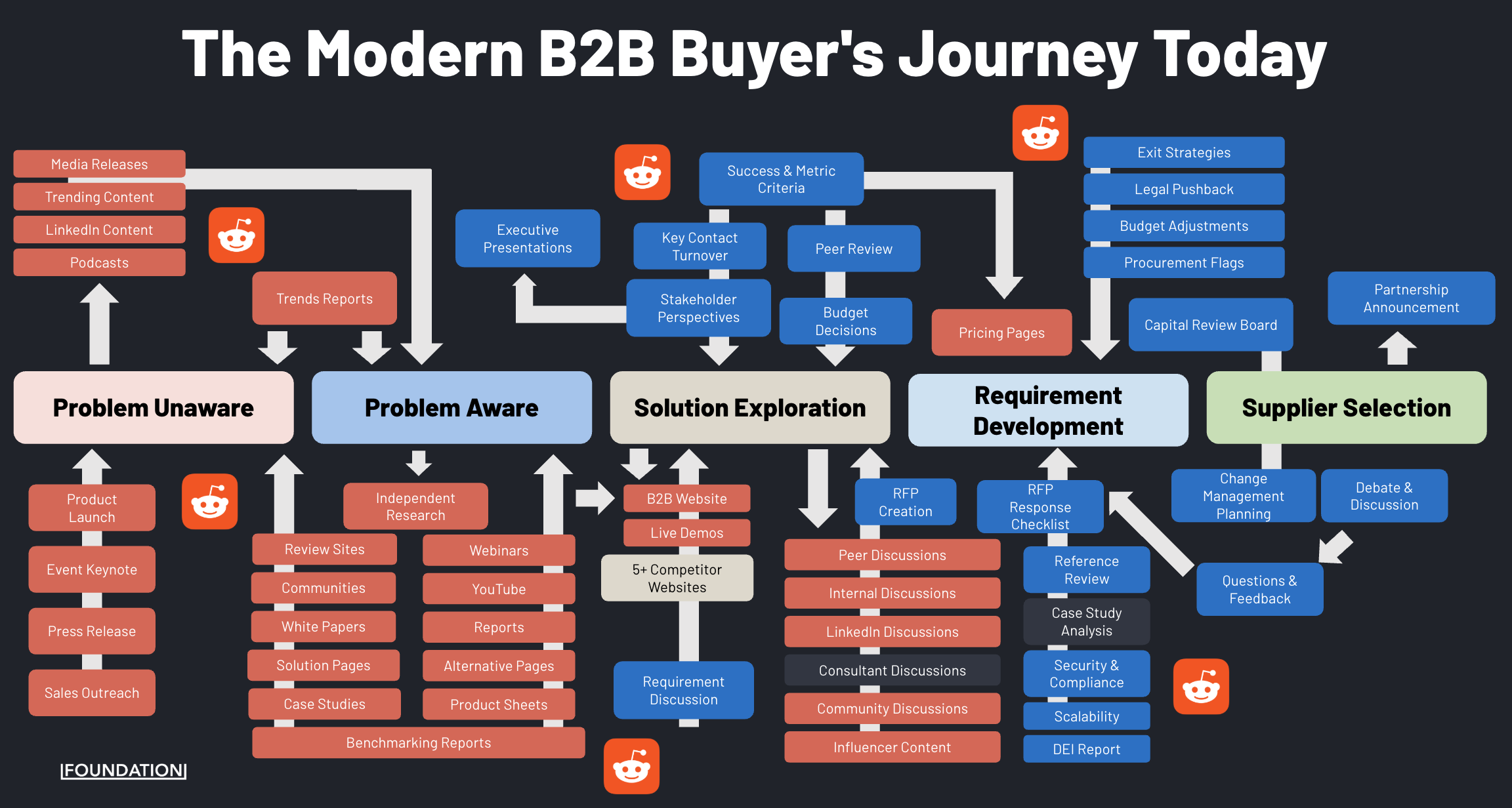 Here’s how Reddit shows up across the modern B2B buyer’s journey: