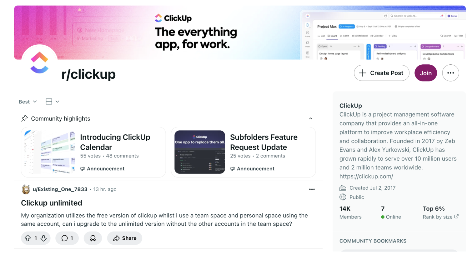 Users often ask platform-specific questions (e.g., “Can I upgrade to Unlimited without affecting my team?”), highlighting the subreddit’s role as a community help desk.