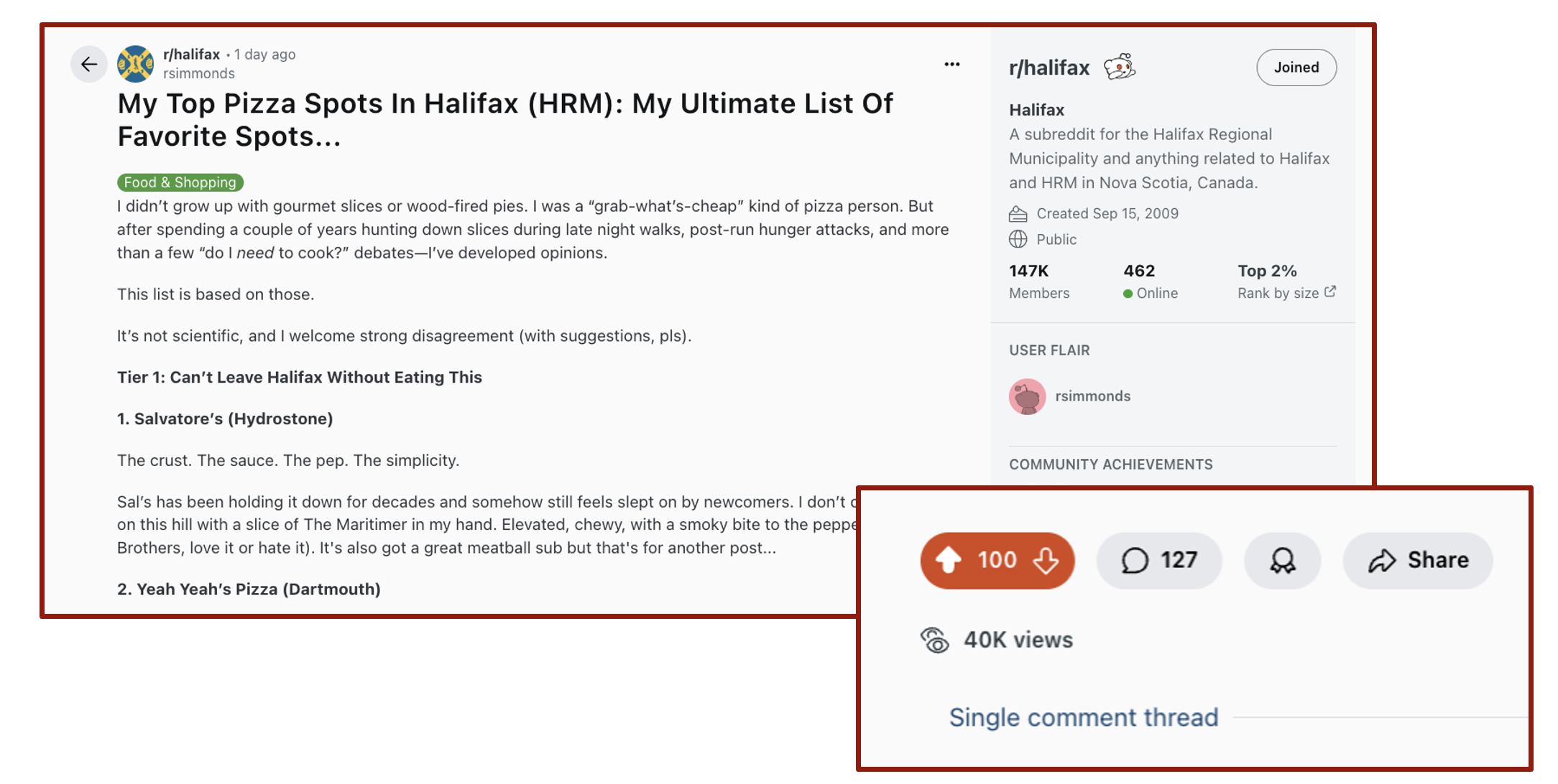 It had over 40,000 views, 100 upvotes and 127 comments.